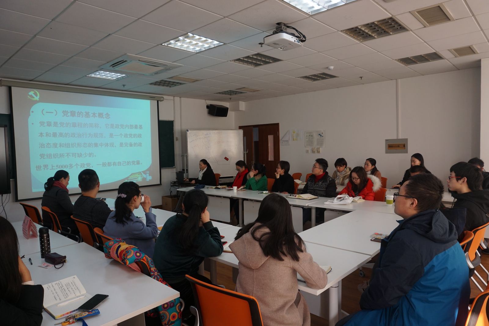 首先,管理联合党支部书记谢书玲对软件本科生高年级党支部的到来表示欢迎,并向同学们介绍管理联合党支部成员。随后,谢书玲同志带领管理支部与学生党支部的师生共同学习十九大会议精神,对《中国共产党党章》最新修订进行具体解读。其解读主要从基本概念、地位、作用、对党章的修改等四个方面进行,并从十个方面对新党章进行了详尽的阐述。大家通过对新党章的学习,深入了解党章修订的新思想、新论断、新概念,有利于把握党的指导思想与时俱进,用习近平新时代中国特色社会主义思想武装头脑、指导实践、推动工作,有利于强化基层党组织政治功能,推动全面从严治党向纵深发展。
