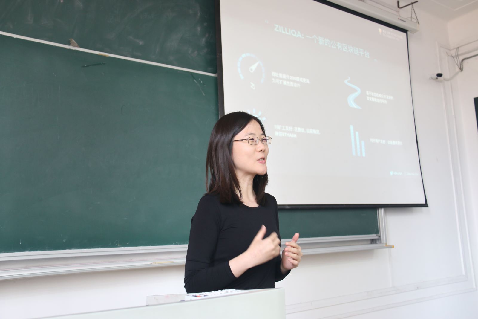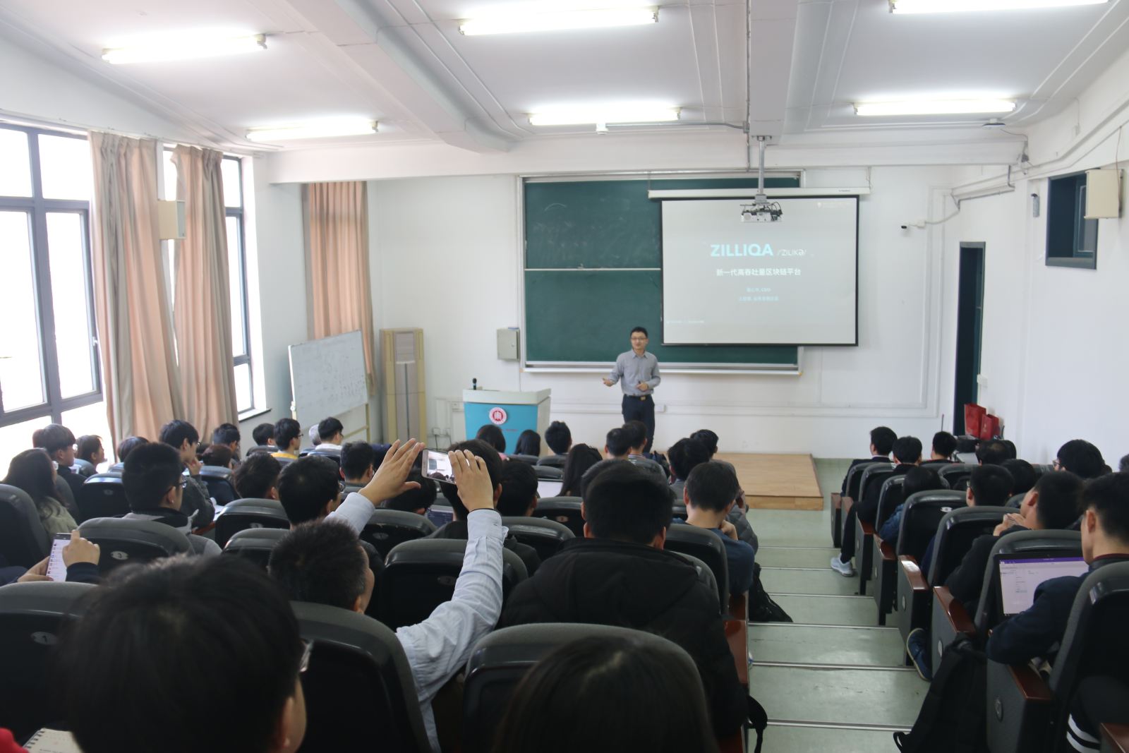 捐赠仪式结束后,董心书先生向同学们介绍了Zilliqa项目——新一代高吞吐量区块链平台。Zilliqa通过网路分片技术来提高网络吞吐量,同时随着节点的增加,可以有更多的分片,所以吞吐量会持续增加,从而实现可扩展性。王恩惠女士也向同学们介绍了项目的实际应用情况和未来愿景。报告也引起了同学们的广泛兴趣,提问环节持续了半个多小时。在全场热烈的掌声中,本次活动圆满结束。