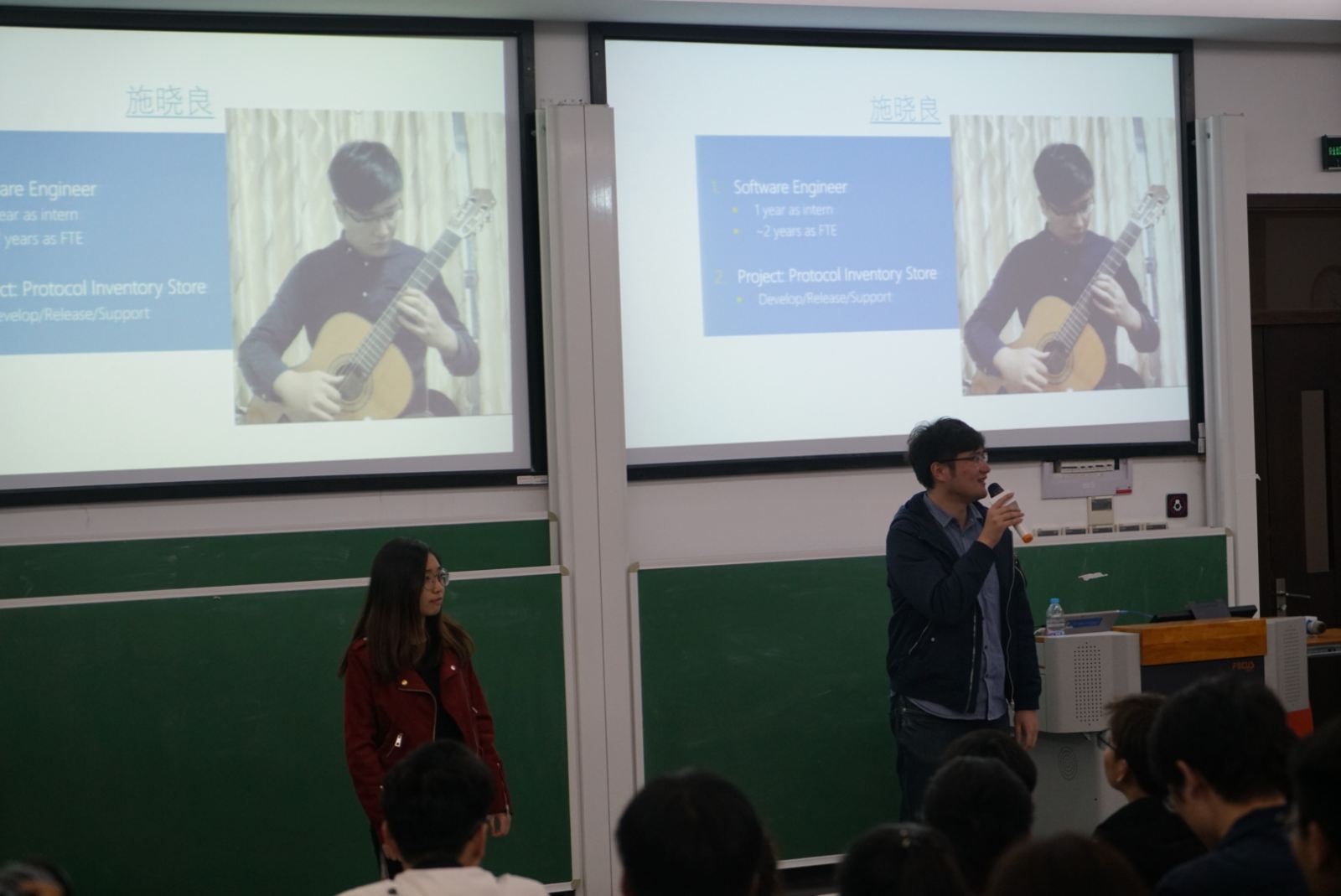 随后,毕业于德赢官网Vwin的学长学姐们分享了他们在微软的工作经历。软件开发工程师施晓良学长介绍了他的面试经历及在微软的项目经历;技术支持工程师唐周益丹学姐为同学们介绍了技术支持部的工作和她个人在微软的体验。