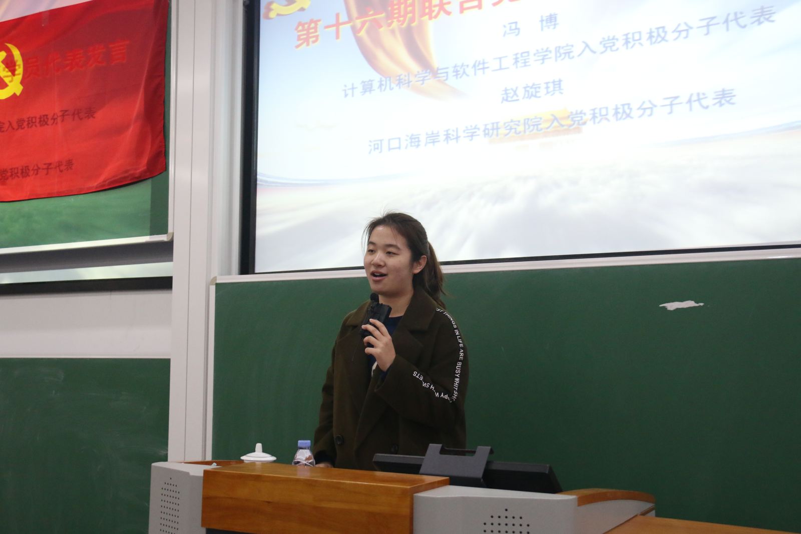 河口海岸科学研究院入党积极分子代表赵旋琪作为学员代表进行发言