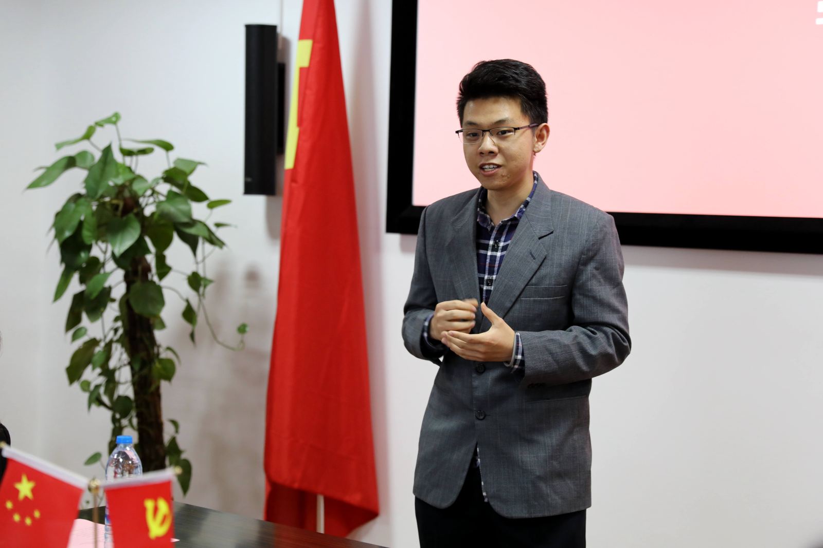 接着,卓越班学生代表曹智杰同学发言。他在发言中首先感谢学院给予了他这个追求卓越的机会。他以自己在学校“人才学院”的经历为例,激励每一位卓越班的同学砥砺前行,共同拼搏,真正成长为具有国际视野的新型卓越人才。
