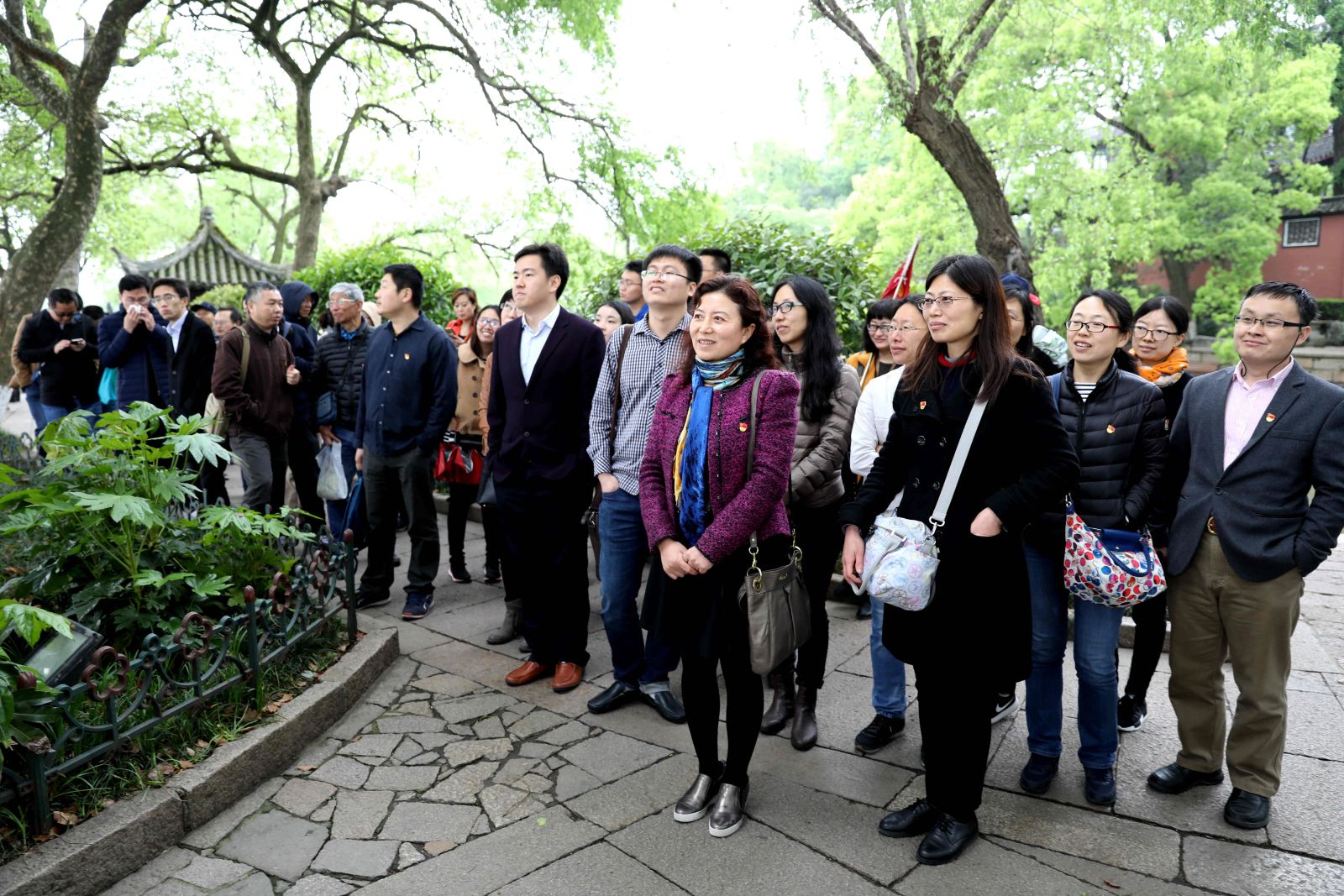 在南湖革命纪念馆,跟随讲解员的讲解,党员们驻足观看珍贵的书籍、史料,仿佛置身于97年前那个伟大的时刻,一代共产党人为了争取民族解放、国家独立而艰苦奋斗。南湖红船、虎门销烟、嘉兴火车站等真实的场景复原,让人置身其中,身临其境地感受无限的澎湃激情。进入新中国时期,习总书记的红船讲话响在耳畔,历次党代会、党章修改,中华民族的伟大复兴历程用图片生动的进行了展示。随后,进入南湖景区参观画舫,来到中国共产党起航地的湖畔船边,党员们举起党旗与红船合影,纪念难忘的时刻。