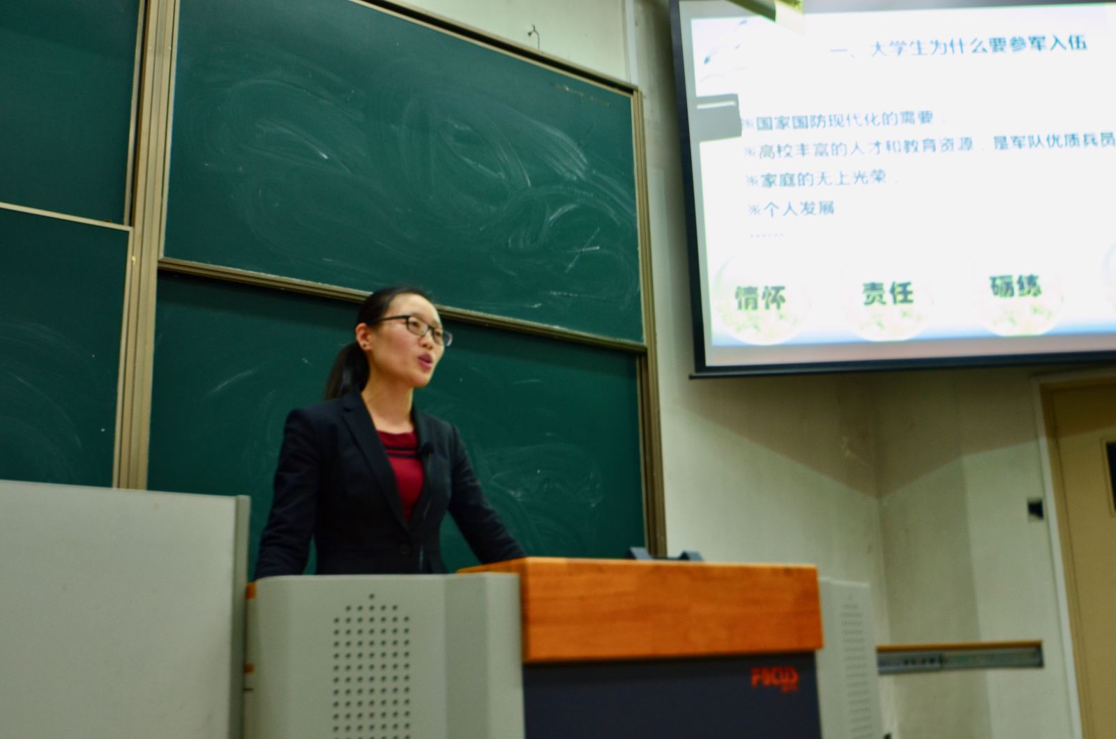 会议开始,孙老师首先朗读了习主席写给南开大学新入伍大学生的信,信中习主席对大学生参军入伍表示了肯定与鼓励,并希望他们“在军营这个大熔炉里百炼成钢,书写绚烂、无悔的青春篇章”。随后,同学们观看了由德赢官网Vwin参军入伍学生录制的视频,视频中的他们怀着满腔热血,携笔从戎,在自己的青春篇章中写下了浓墨重彩的一笔。孙老师还向大家具体介绍了大学生参军入伍的基本条件和要求,详细介绍了国家对大学生应征入伍在学费补偿、考研加分、落户等方面的优惠政策。