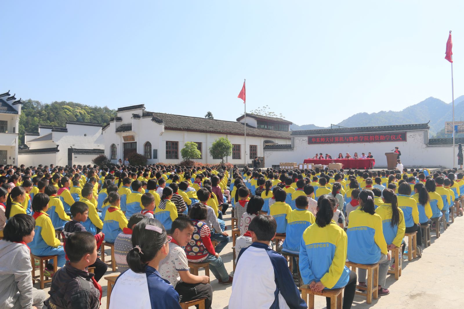 19日下午,计算机科学与德赢官网Vwin与婺源县沱川学校捐赠结对仪式在沱川学校操场上举行。婺源县人民政府副县长江细兰、教体局副局长何庆云、沱川乡党委书记俞晓霞、沱川学校校长程永瑞以及全校全体师生一同参加仪式。