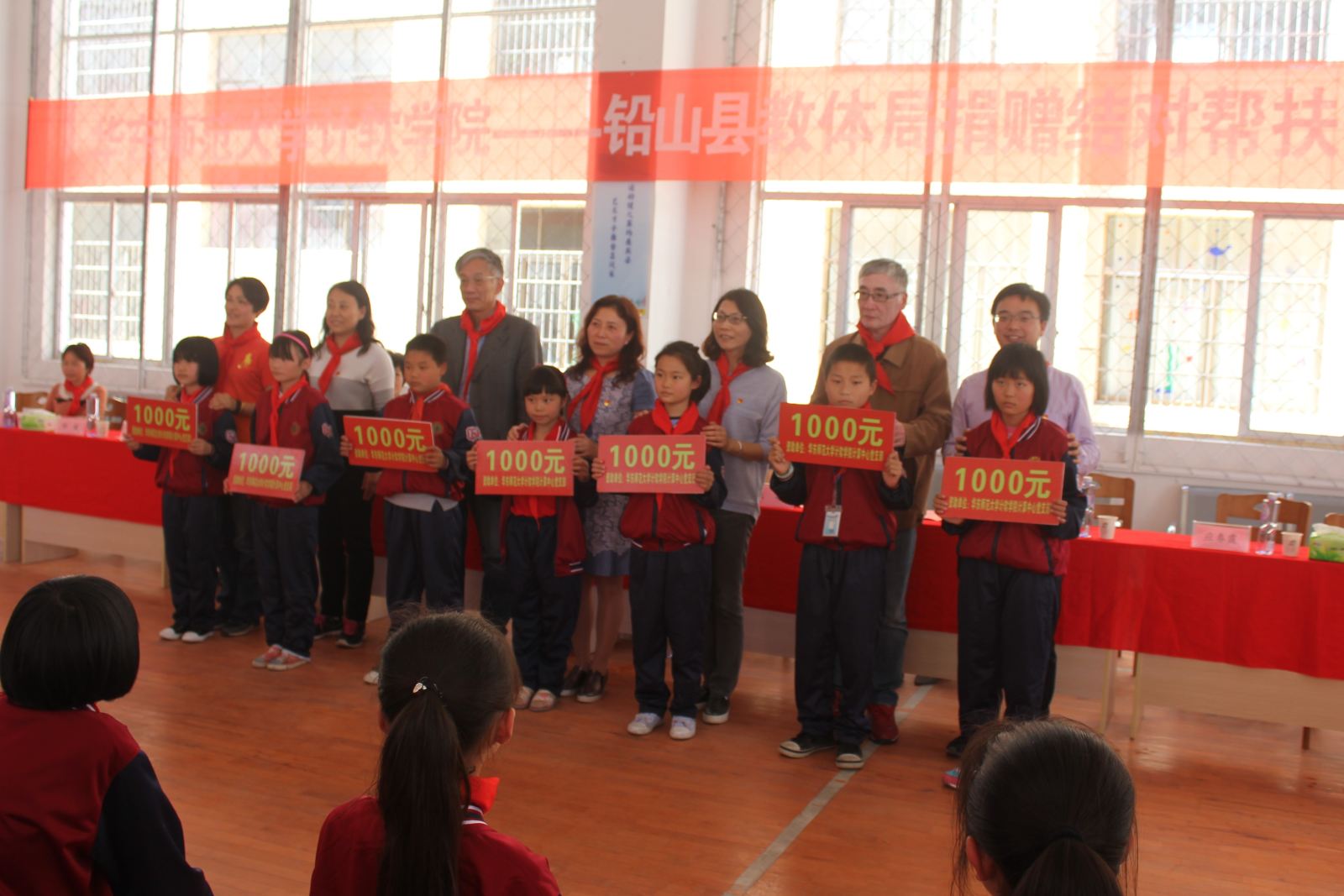 在激昂的音乐中,少先队员们为领导和来宾们敬献红领巾,永平镇党委书记黄斌发表致辞表示热烈的欢迎和诚挚的谢意。此次,学院向铅山县武夷山中小学、湖坊中学、永平小学等四所学校捐赠电脑60台、一批图书和体育器材。学院计算中心党支部与永平镇中心小学7名贫困生进行了结对帮扶。永平小学叶海凤校长对于德赢官网Vwin的捐赠表示衷心的感谢,也对受助同学提出:要记住眼前这温暖的场景,发奋学习,以优异的成绩来报答社会的关爱之情。铅山县委、县宣传部部长黄薇妤致辞,她在表示感谢之余还提出了两点要求:一是希望受助学校善用物资,最大限度地发挥它们的作用。二是希望孩子们心怀感恩,努力成才,回报社会。