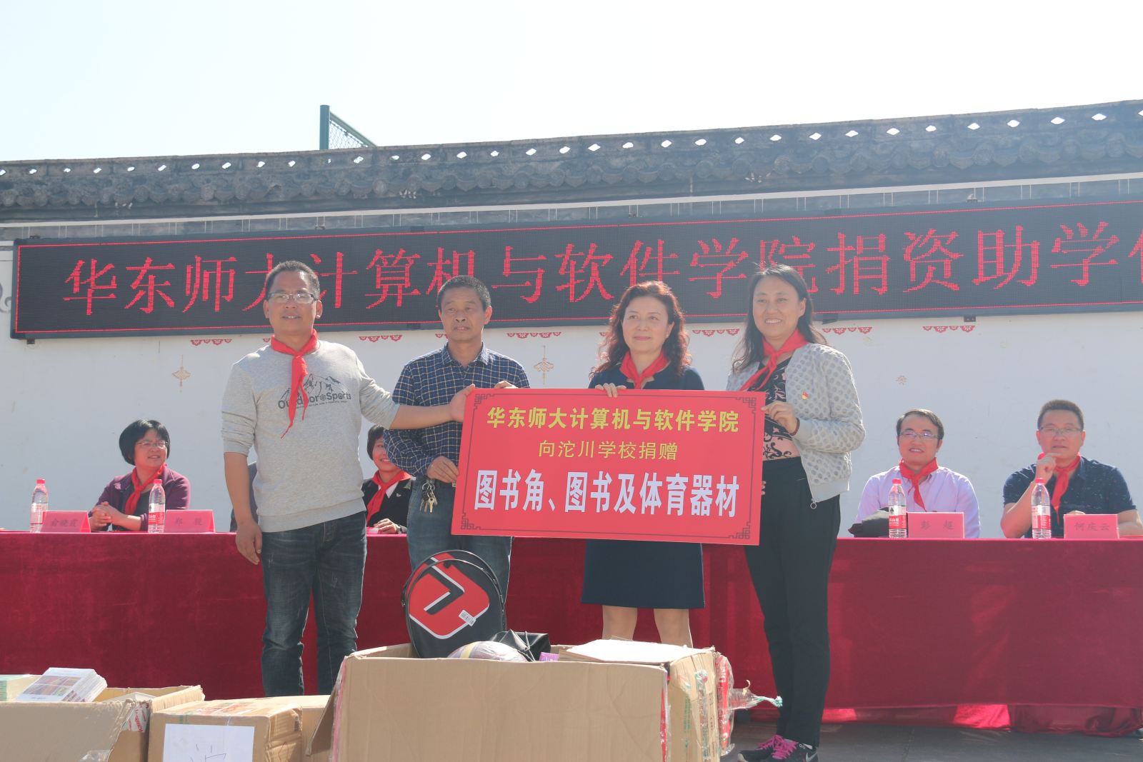 图4 向沱川学校捐赠图书角、图书和体育器材