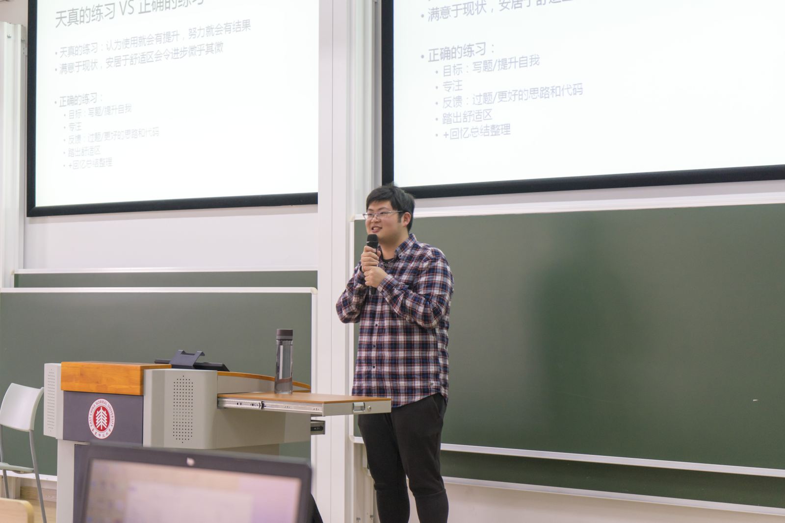 具有多年ACM竞赛经验的17级研究生储德明同学向同学们分享了自己的编程经验。他从介绍编程的内在规律入手,建议同学们重视接受教育和深入学习的重要意义,着重培养自己的成长型思维,鼓励同学们不要惧怕挫折与失败、敢于走出舒适区。此外,他还建议同学们要养成良好的编程习惯,做到自我修正与模仿他人相结合,从而形成具有自我特色的代码风格,以及干净舒适、逻辑清晰的流程设计和函数设计。最后,他也向同学们介绍了编程的几种常用语言。
