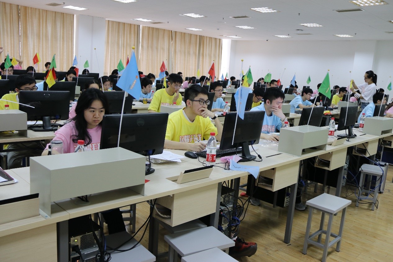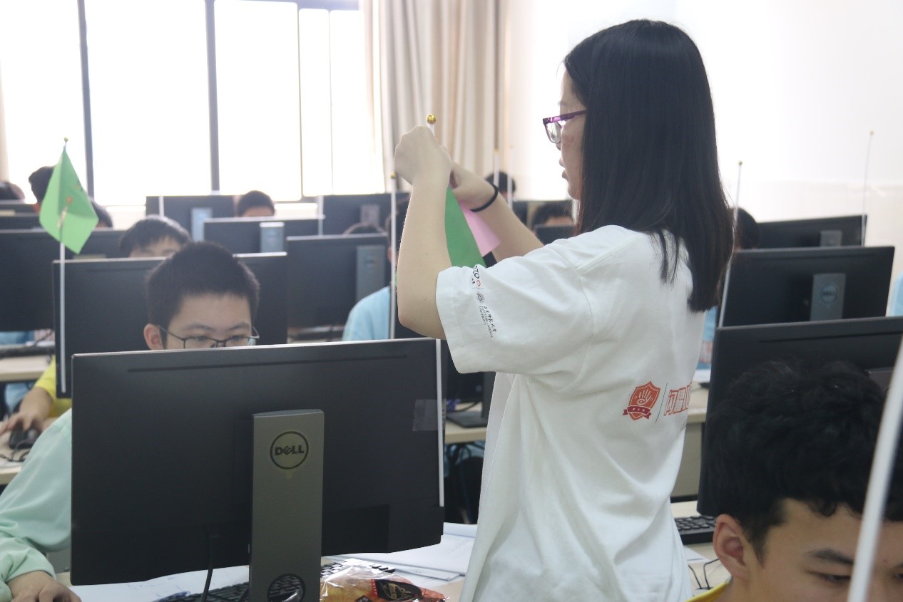本次比赛分为新生组、专业组和高中组,专业组面向长三角高校开放报名,新生组面向校内大一新生,高中组面向上海市高中生开发。今年比赛相较去年增设了高中组,另外还有一位初中生也参加了高中组的比赛。比赛期间,每位选手需要使用1台电脑在规定的5个小时内使用规定的C/C++/java/python等编程语言编写程序以尽可能多地解决所给出的问题。在选手正确完成一道题目后,工作人员将在其位置上升起一面彩旗或者气球。