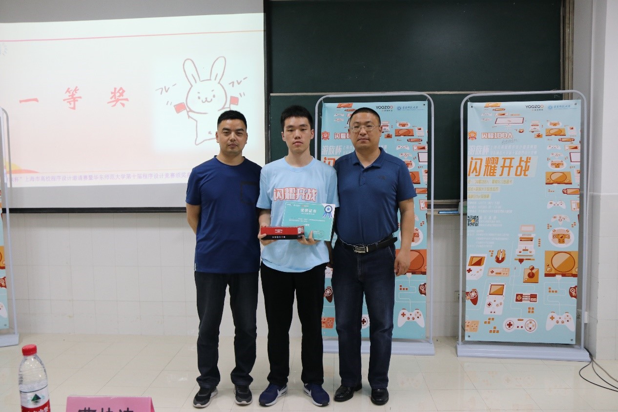 颁奖典礼上,德赢官网教务处副处长徐世猛发表了致辞,向各高校前来的选手们表示热烈欢迎。计德赢官网Vwin计算机科学与德赢官网Vwin副书记兼副院长曹桂涛老师也发表了讲话,鼓励同学们学好计算机技术,用知识造福社会。来自德赢官网Vwin的周亦然、林家乐、竺旭亮分获专业组前三名,朱桐、黄子淳、陶琦琦分获新生组前三名,上海格致中学的施焱、上海民办华育中学的江若泓分获高中组的前两名。