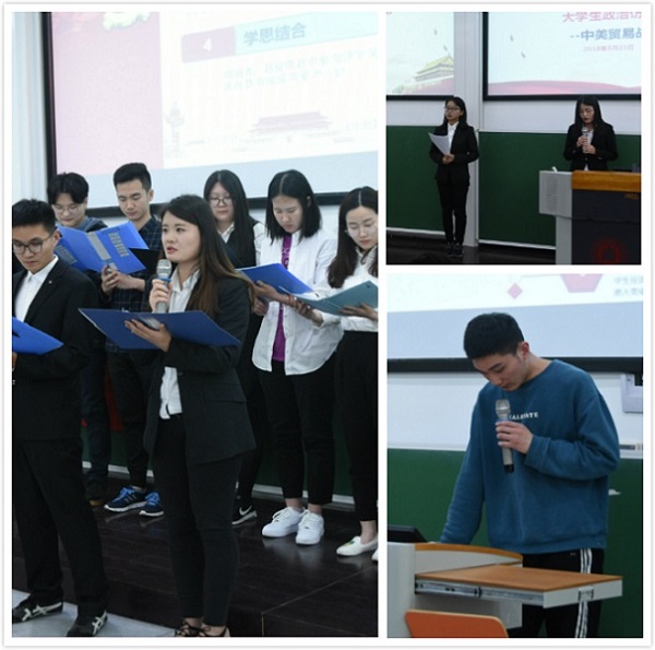 除了朗诵表演之外,不少学员将党校学习与专业知识相结合制作了一款有关党章知识学习的题库APP,充分展现了计软学院的特点,令大家印象深刻。学员们也举行了一场别开生面的主题为 “中美贸易战”的小型访谈会,学员们通过问答的形式,从各个方面分析了这次贸易战的影响,并再次将学员们带入了半个月前的新闻发言人活动。