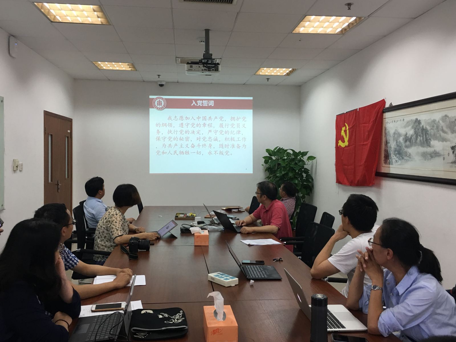 首先,与会党员认真学习了中共十九大的精神,“不忘初心,牢记使命,高举中国特色社会主义伟大旗帜,决胜全面建成小康社会,夺取新时代中国特色社会主义伟大胜利,为实现中华民族伟大复兴的中国梦不懈奋斗。”在彭超书记的带领下,与会党员重温入党誓词,学习党章的修改过程,深入体会新党章的内容。接下来,支部党员老师一起观看了“时代楷模”钟扬教授的模范事迹的记录片,学习他以德修身、以德立学、以德施教,用心尽力帮助学生成长成才。最后,支部党员老师一起就学习内容开展了坦诚热烈的交流探讨,大家从自己的党员初心和教师使命出发,联系自身的工作,畅谈了如何结合日常教学工作,在教书育人方面和学生培养方面发挥党员老师的模范带头作用。