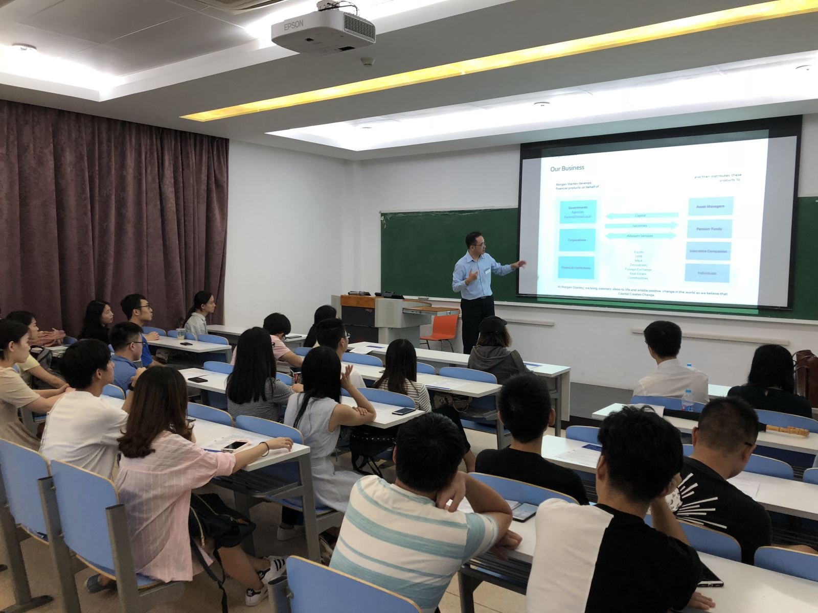 首先,摩根士丹利Yushi Song女士详细阐述了本次宣讲的流程。随后,Hao Yang先生通过PPT和生动的语言向同学们展示了摩根士丹利公司的风采。他强调,摩根士丹利能够给予员工“Global Platform”,公司的员工来自世界各地。摩根士丹利十分重视“Technology”,每年公司将大量资金投入IT,庞大而强力的系统助力员工不断学习。