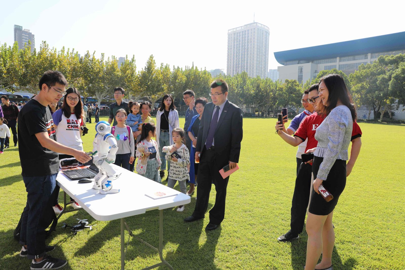 路演当天,为吸引更多校友前来了解目前学院发展情况和“大城小爱”项目,志愿者团队带来了机器人和无人机飞行展示。高科技产物的出现,吸引了来自不同年龄段人群的关注。屏幕上滚动播放的学院概况介绍也让到场的校友们感慨学院在学科发展、科研建设、社会服务等方面的飞速成长。