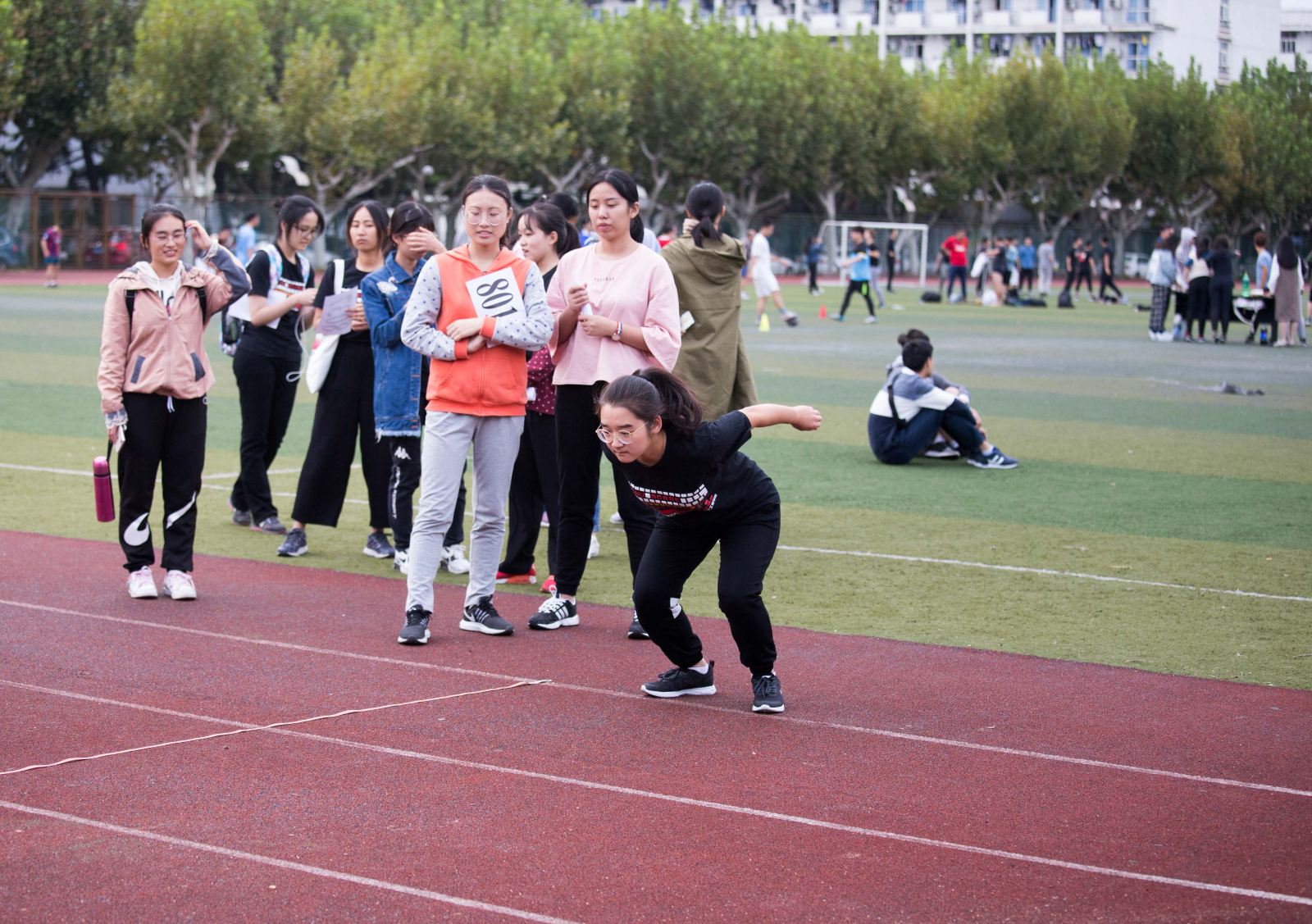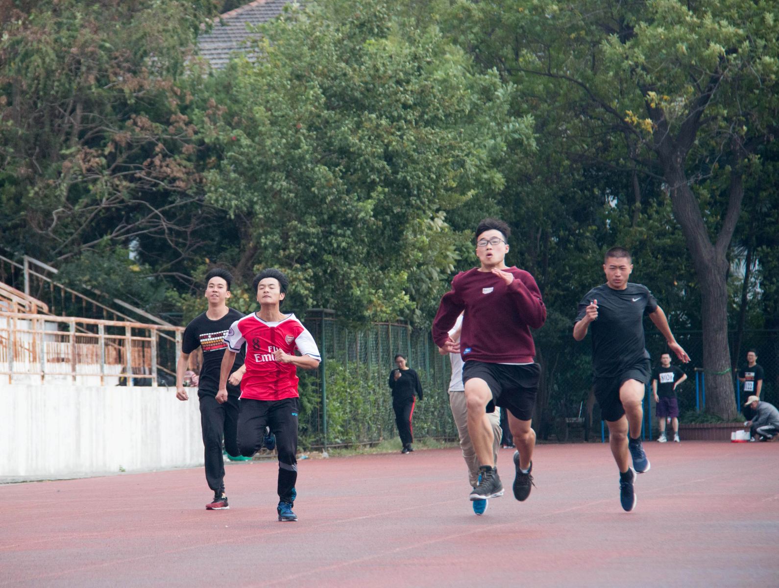 看,百米赛场上,同学们向终点发起冲刺,汗水飞扬,朝气蓬勃!