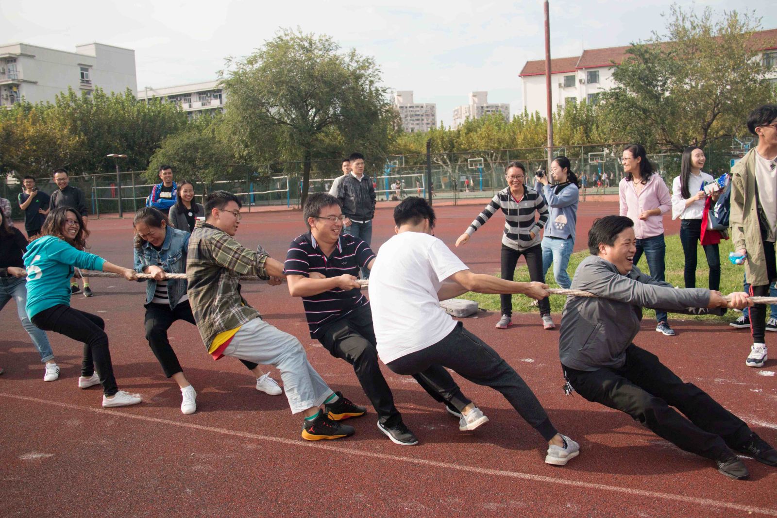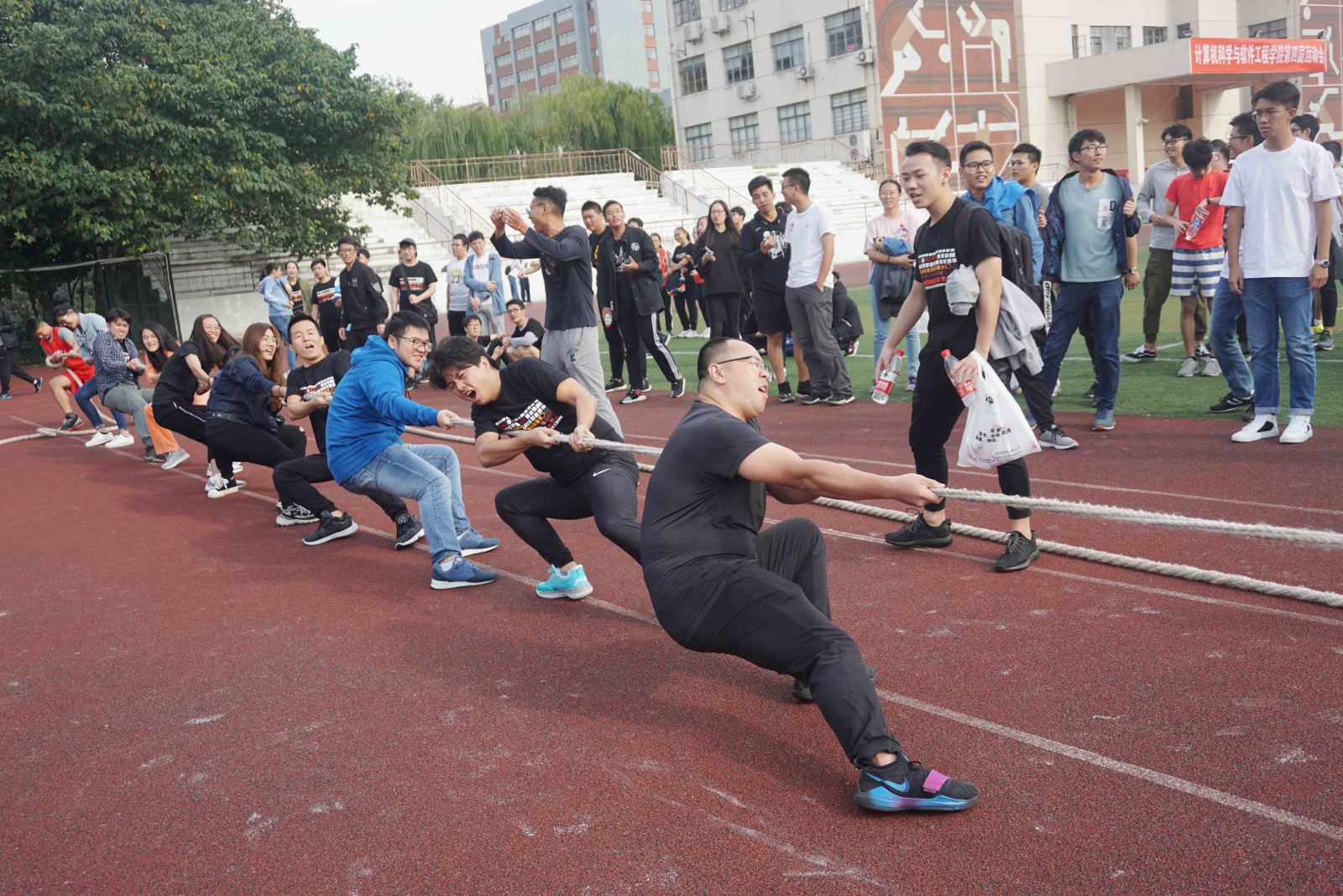 在本届运动会中,老师们的风采表现更是让在场的同学们大呼惊艳!老师们参与了投篮、拔河等运动项目,矫健的身姿引得同学们纷纷围观喝彩!