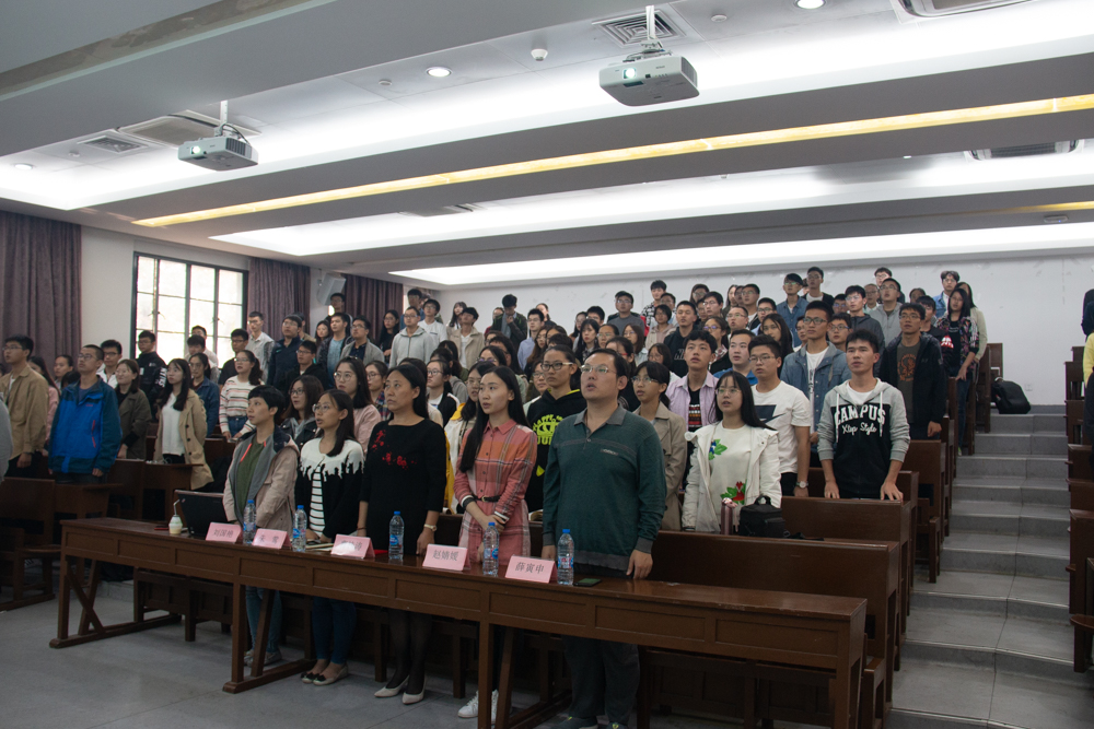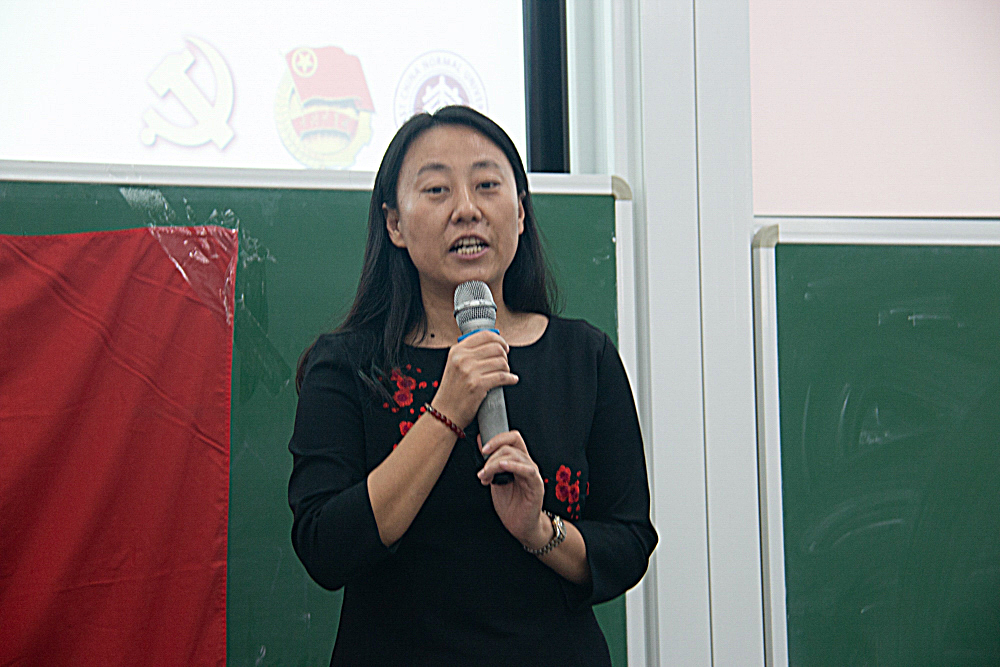 本次开学典礼在庄严的国歌中拉开了序幕。曹桂涛老师首先致辞,她对学院党章学习小组暨第十七期团校开学典礼顺利召开表示由衷地祝贺,同时希望同学们能够不忘历史使命,牢记责任意识,积极努力在党章学习小组以及团校中收获更全面的对党、对国家的认识,拓宽自己的政治意识、培养自己的创新能力,并且深切地表达了对同学们的美好期待:做一个敢想敢做,勇于担当,砥砺前行的社会主义时代新青年。