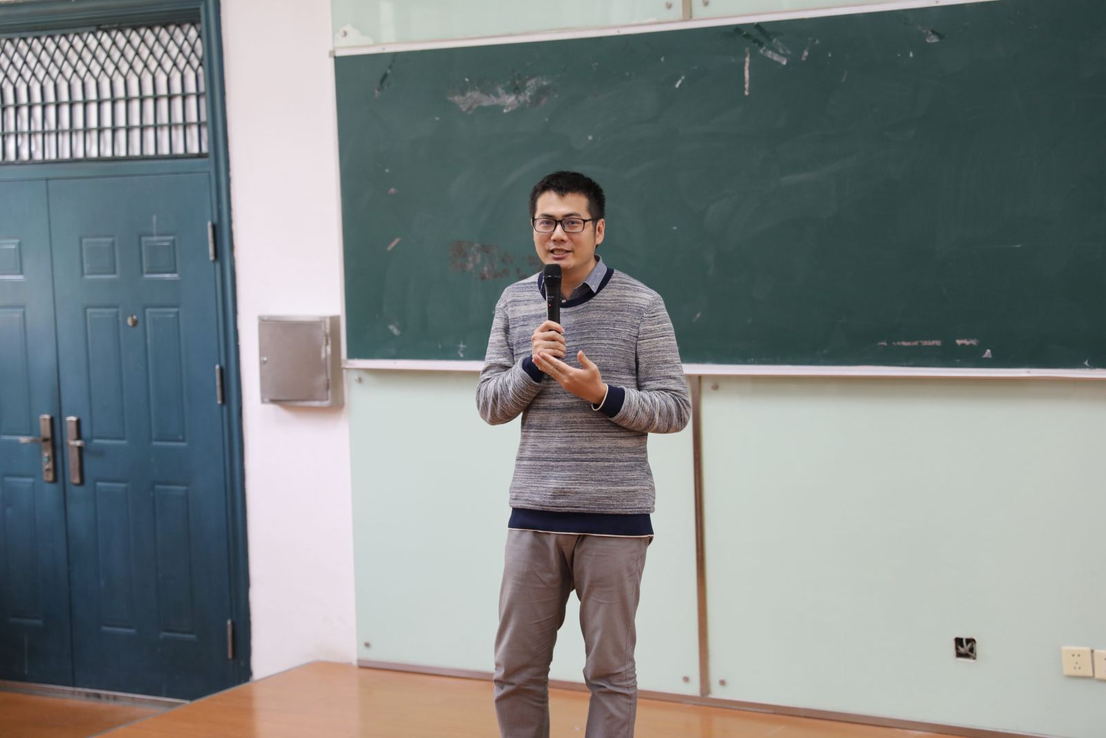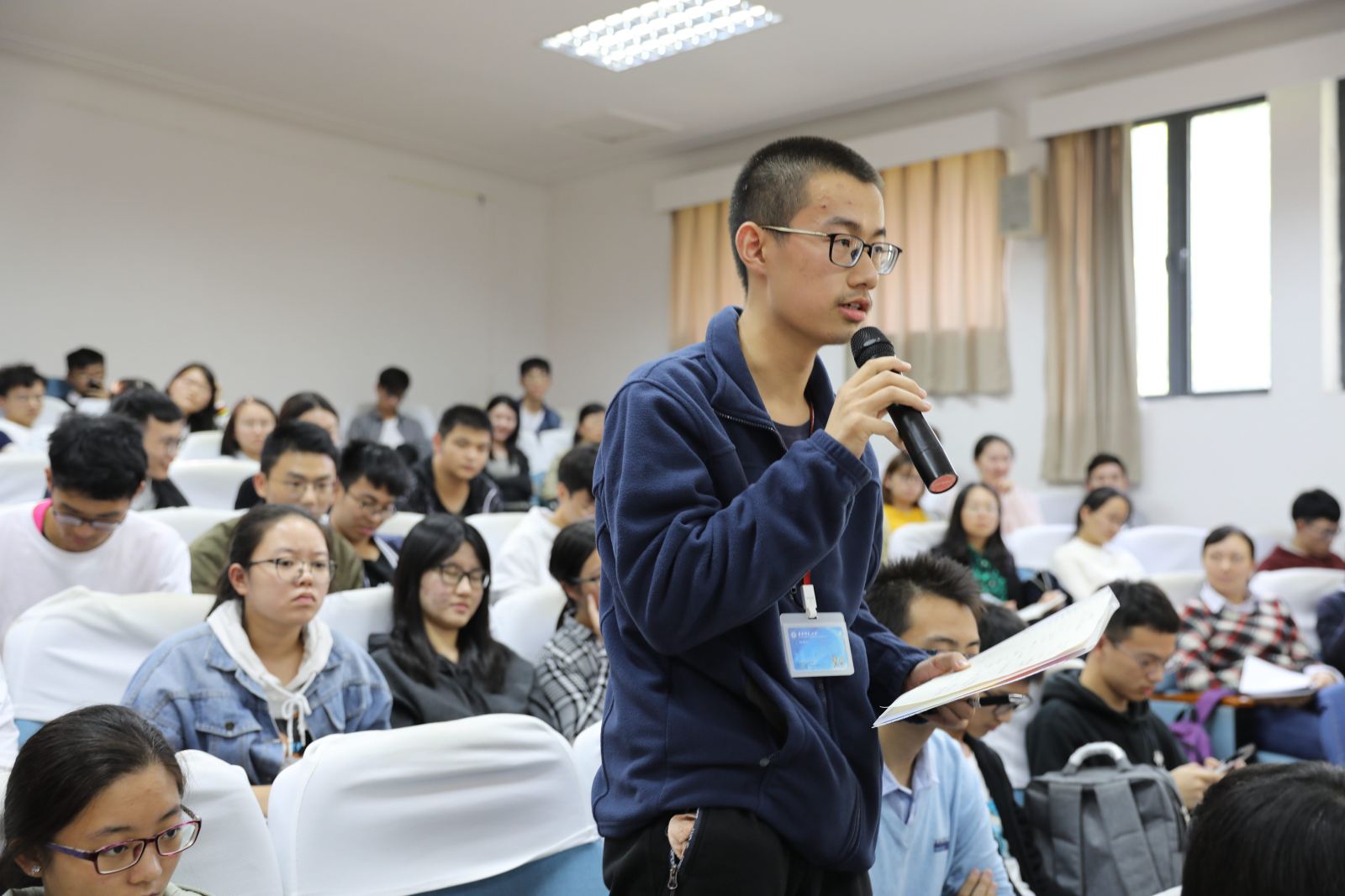 张逸中与同学们分享了他的大学生活是如何度过的,又是如何走上创业之路,并讲述了自己参加大学生创新创业大赛时如何从低谷中走出,直至最后勇夺金奖的心路历程。