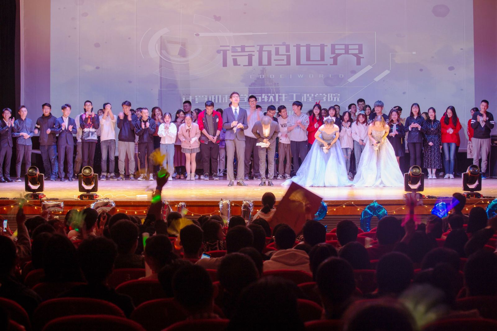 学导、部长们的舞蹈,将现场的气氛推到了顶点。大家拿起荧光棒,为自己心爱的学导以及部长们打call。学导们的卖力出演,部长们的卖萌、搞笑更是让大家掌声不断、欢呼连连。