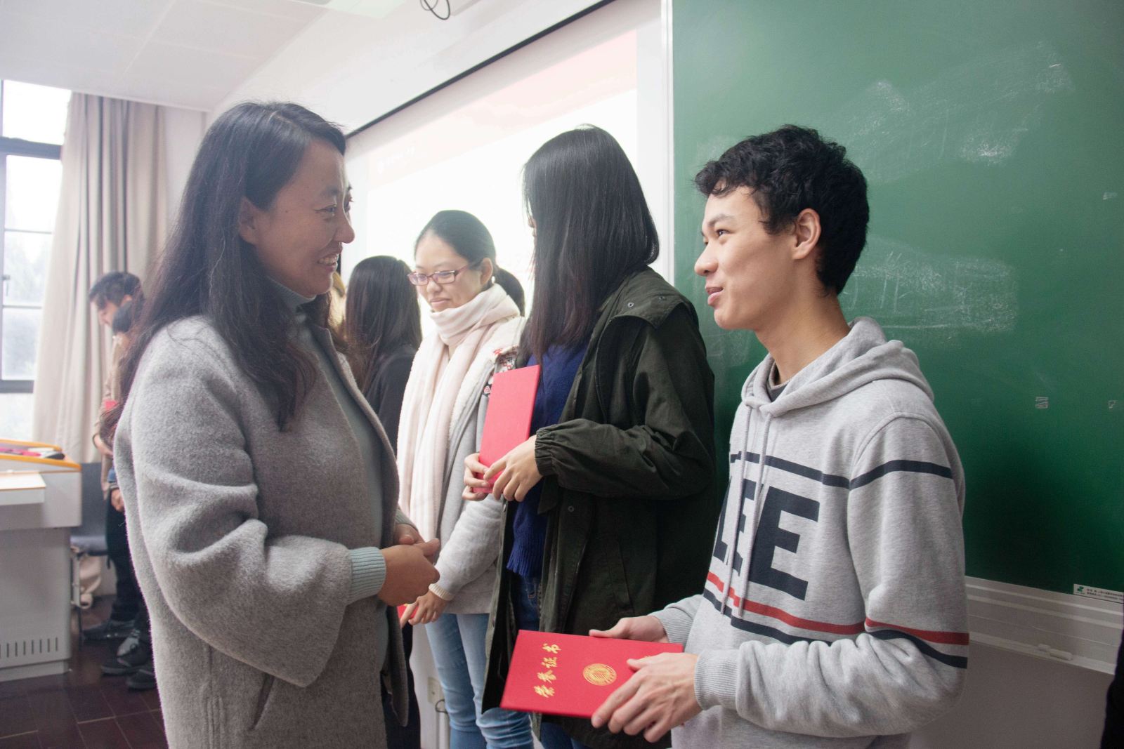 曹老师为获奖学生颁奖