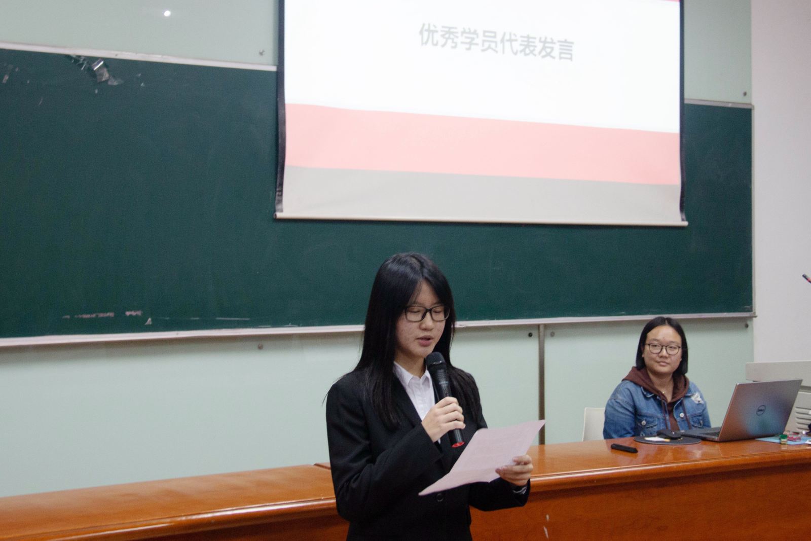 优秀学员代表陈怡翃同学代表团校成员做精彩发言。她分享了她在团校的收获,参与团校活动的感受,并代表全体团校成员表达了对未来的期待。