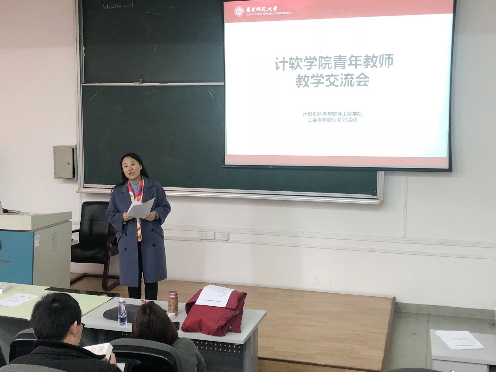 曹桂涛老师对前来参加交流的学院青年老师表示欢迎,并表达了召开教学交流会的初衷,希望借此机会能帮助学院青年教师提高教学水平,并加深青年教师之间的相互了解。她随后介绍了学院教学事务的基本情况并介绍了两位参与报告老师的基本情况。