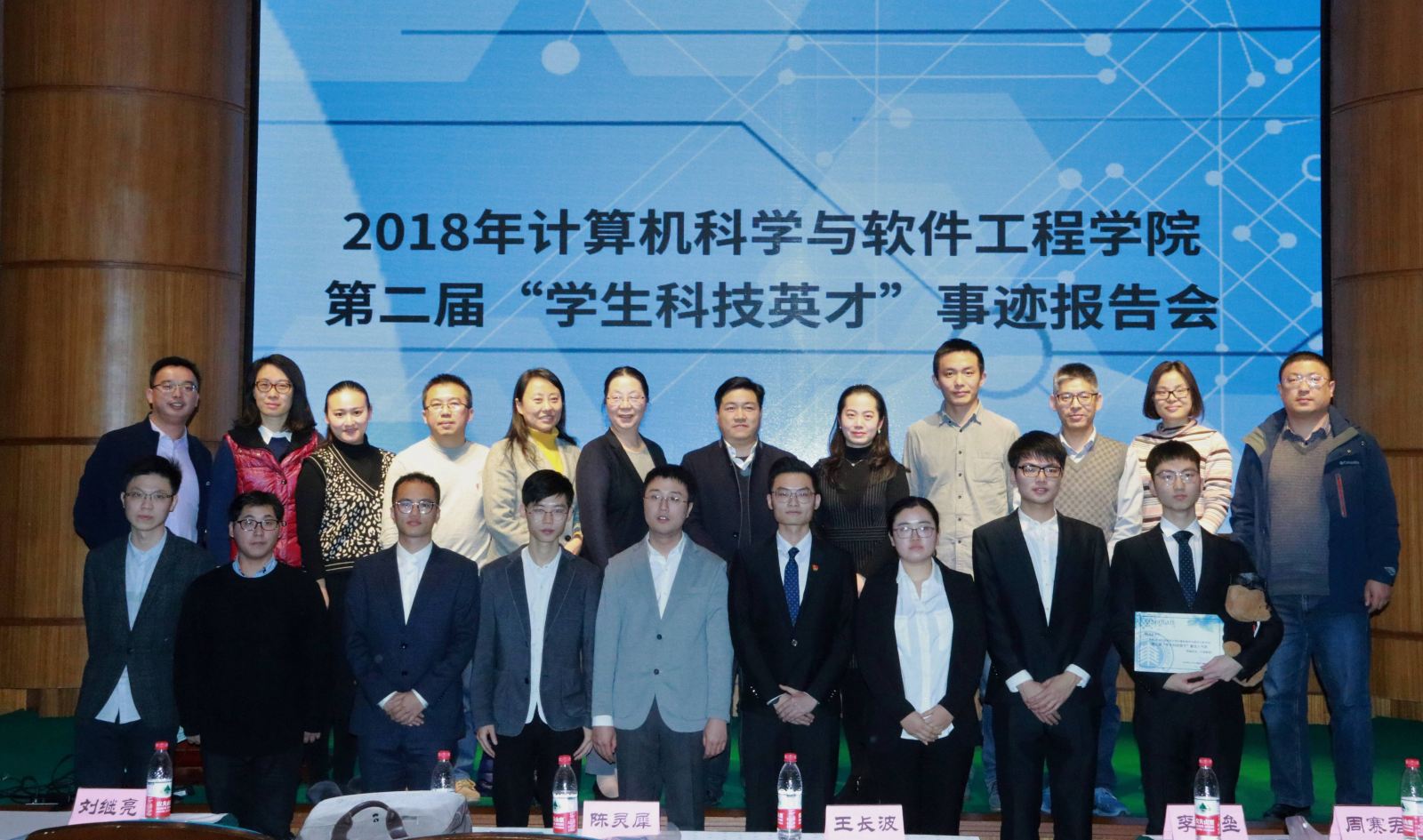 12月19日下午,计算机科学与德赢官网Vwin第二届“学生科技英才”暨“华荻奖学金”事迹报告会在逸夫楼一楼报告厅隆重举行。10位候选人进行了精彩的风采展示,经过20多位专家评委和200名大众评委的现场投票以及前期的网络投票,最终汪诚愚、朱鹏飞、徐洪义、靳远远、龙万成5名同学获评2018年第二届“学生科技英才”称号和“华荻奖学金”!徐洪义、汪诚愚、龙万成获得了本届评选的“最佳人气奖”,王文、孙长志、陈心宇、张国鹏、黄可蒙五名同学获得了本届“学生科技英才”提名奖。