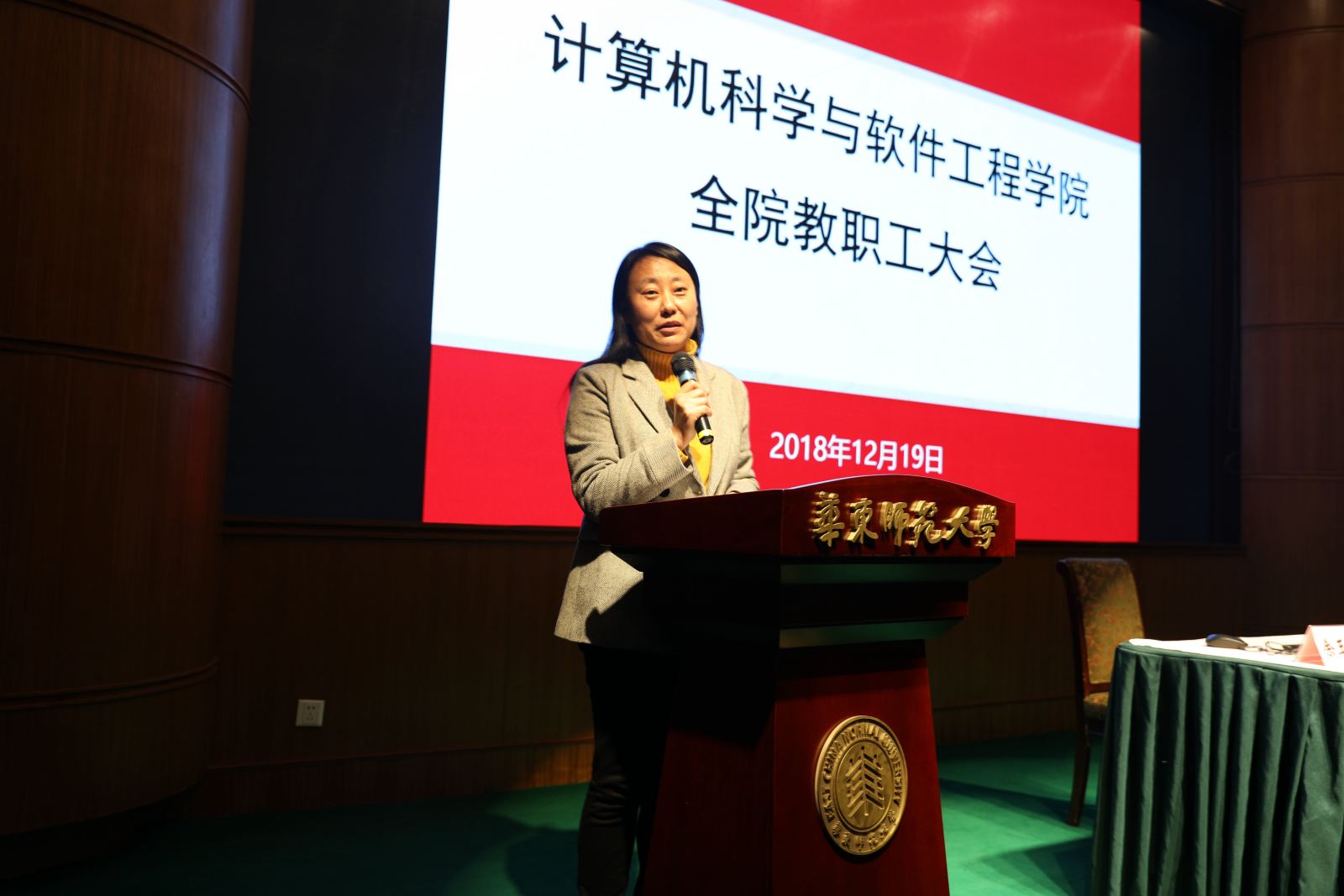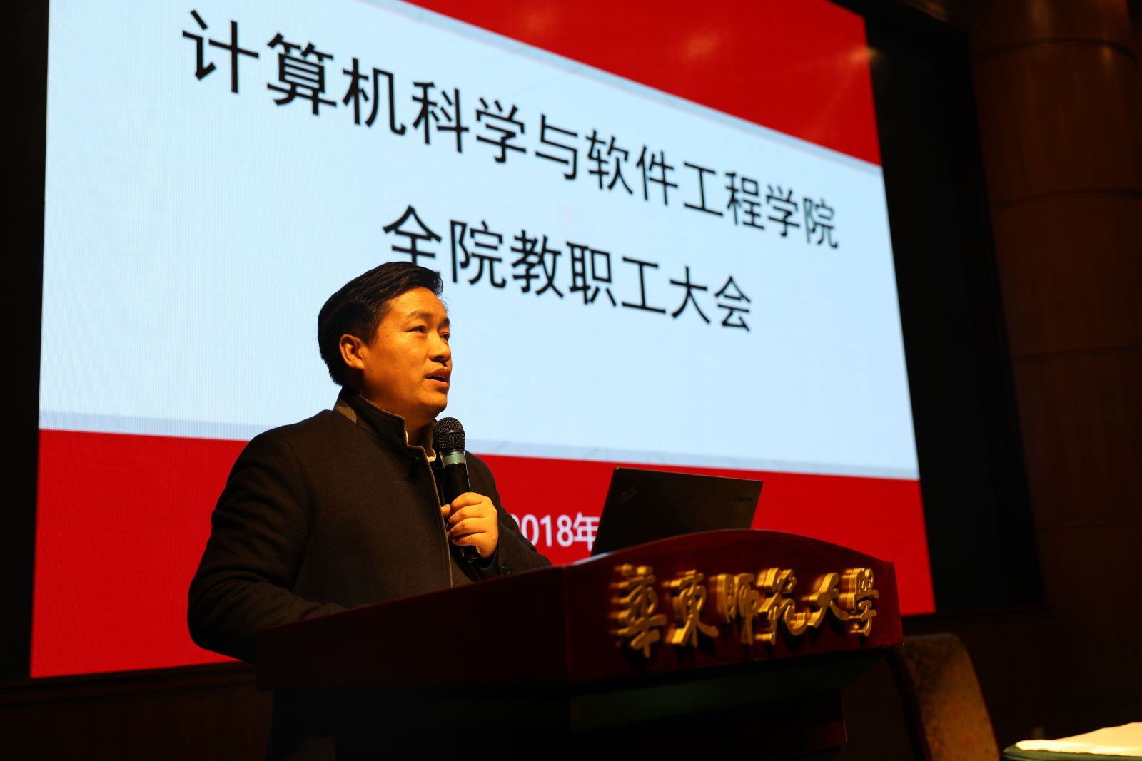 12月19日下午,计算机科学与德赢官网Vwin召开全院教职工大会,总结2018年度工作情况。学院全体领导班子成员、教职工以及部分学生代表参加了此次会议。党委书记兼常务副院长王长波做工作汇报,党委副书记兼副院长曹桂涛主持大会。