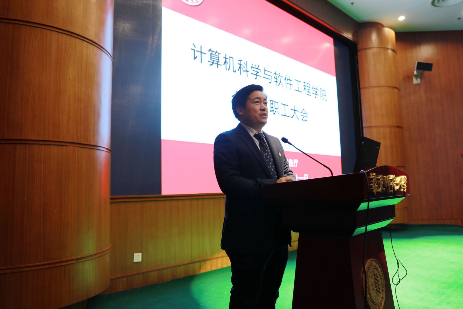 王长波书记围绕学科建设、队伍建设、人才培养、社会服务等方面总结了2018年度学院的整体工作。他表示,今年学院在学生双创比赛、科研获奖、教改工作等方面取得了累累硕果,产出颇多。临近年关,他再次强调安全的重要性,并提醒全院教职工要紧守底线,对安全问题常抓不懈。同时,他感谢全体教师在过去一年的辛勤付出,预祝学院来年能够继续收获盆满钵满,开创跨越式发展新局面!