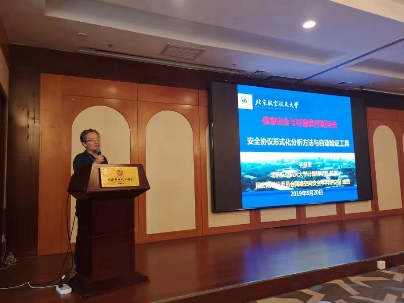 李舟军教授做了题为“安全协议形式化分析方法与自动验证工具”的报告。报告首先简要介绍了安全协议形式化分析的研究背景以及研究现状,然后重点阐述在基于Horn 逻辑的安全协议验证方法以及自动验证工具方面的一系列研究工作。