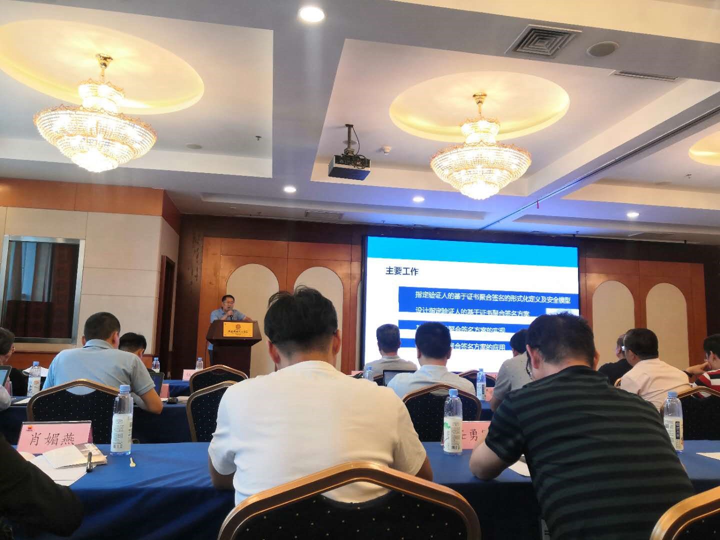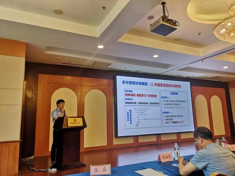 张福泰教授做了题为“抗合谋攻击的基于证书的聚合签名方案”的报告。报告探讨抗合谋攻击的基于证书的聚合签名方案的设计,讨论基于证书的聚合签名方案的在云存储等场景中的应用。