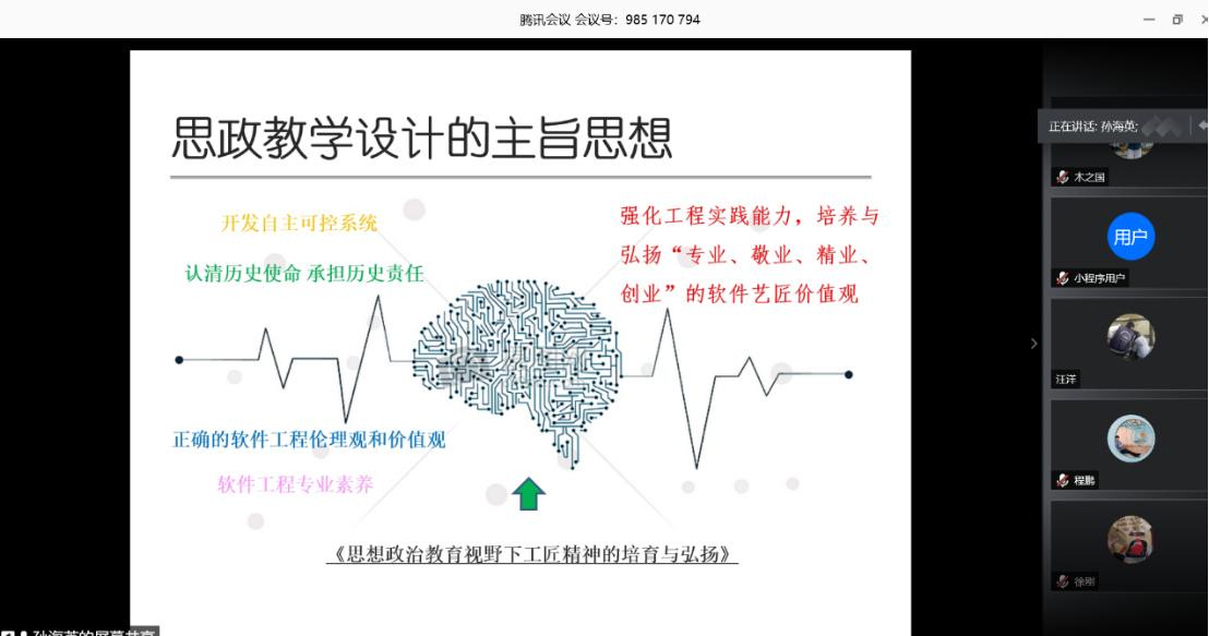 学院教师孙海英以《强化工程实践能力 传递软件艺匠内涵》为题,全面介绍了《软件开发实践》教学团队课程思政教学设计。本课程立足软件艺匠思想内涵,结合我国当前核心技术短板,引导学生树立正确的软件工程伦理观和价值观,提升软件专业道德素养,锻炼和增强学生动手和实战开发能力,明确其在国产软件行业发展中应承担的历史使命和责任,树立研发独立自主核心软件的信念。该教学设计荣获第二届德赢官网Vwin课程思政设计研讨与案例征集活动一等奖。