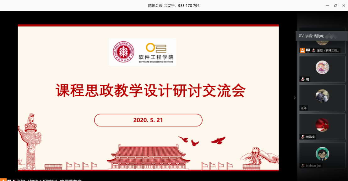 2020年5月21日上午,德赢官网Vwin在云端召开了“课程思政教学设计研讨交流会”。两位在学校课程思政教学设计研讨与案例征集活动中的获奖老师在线分享设计理念与教学经验。会议由学院副院长张敏主持。