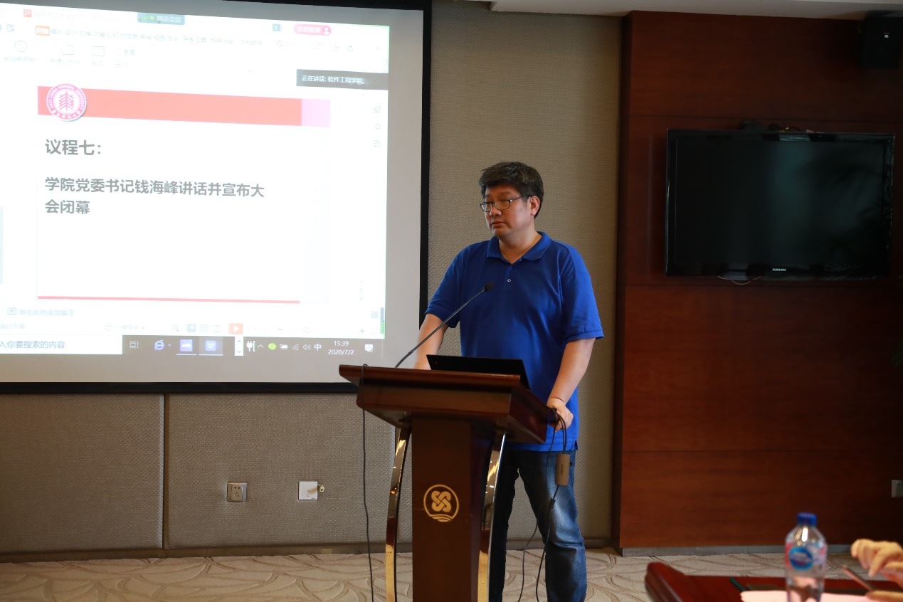 钱海峰感谢全院教职工对班子成员工作的信任与支持。他结合近期党史、新中国史、改革开放史、社会主义发展史的学习教育工作,鼓励全院上下认真学习“四史”,加强文化自信。作为一名软件人,在当前严峻的国际形势下,要勠力同心、勇于面对困难,积极配合学院做好本职工作,更好地实现自我价值。