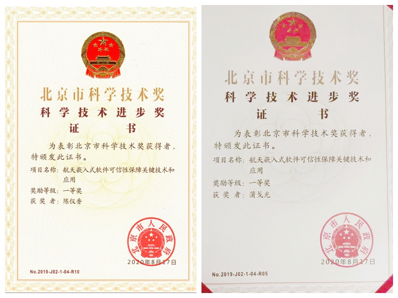 为奖励做出重大科学发现、做出重大技术发明、完成和应用推广创新性科技成果,在推动科技进步和经济社会发展方面具有突出贡献的个人和组织,9月10日,2019年度北京市科学技术奖励大会在北京会议中心召开。德赢官网Vwin陈仪香和蒲戈光两位教授所在团队依托航天五〇二所承研的“航天嵌入式软件可信性保障关键技术和应用”项目获2019年度北京市科学技术进步一等奖。