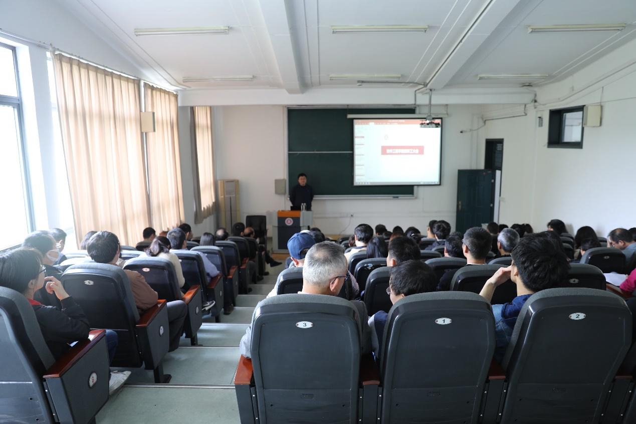 学院副院长张敏汇报本科教学工作。她从学院本科专业的现状、面临的挑战和改革方向出发,鼓励教师们能够积极参与到卓越育人的建设中来。