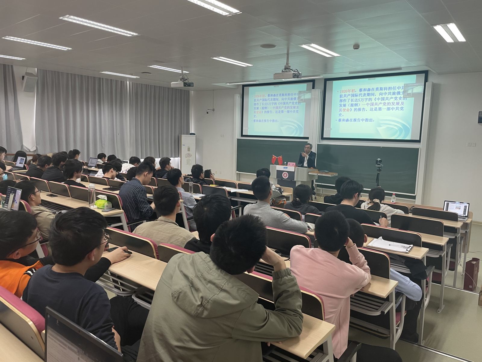 2021年4月28日,德赢官网Vwin春季学期“形势与政策”课核心课程于教书院316顺利展开,主讲人为市委讲师团党史学习教育专家宣讲团成员,德赢官网Vwin紫江特聘教授,马克思主义学院教授、博士生导师宋进。在庆祝党百年华诞的重要时刻,在“两个一百年”奋斗目标的历史交汇节点,宋进老师为同学们带来了主题为“中国共产党百年历史的回顾与思考”的专题课程,回望百年党史,学习先辈精神。德赢官网Vwin2020级1班、2班共86名同学在线下聆听课程,同时在线上还有来自孟宪承书院、经管书院、德赢官网Vwin、通信学院、音乐学院、美术学院共728名本科生通过收看直播的方式共同参与了课程学习。