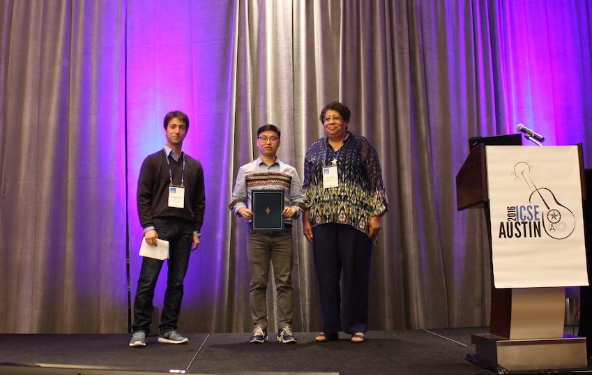 5月18日,德赢官网博士生苏亭应邀参加在美国奥斯汀举行的第38届国际软件工程大会(ICSE 2016),并在国际计算机协会(ACM)学生学术竞赛(Student Research Competition,简称ACM SRC)中获得研究生组金奖,这是中国大陆高校研究生首次在计算机与软件工程类顶级国际学术竞赛获得这一奖项。