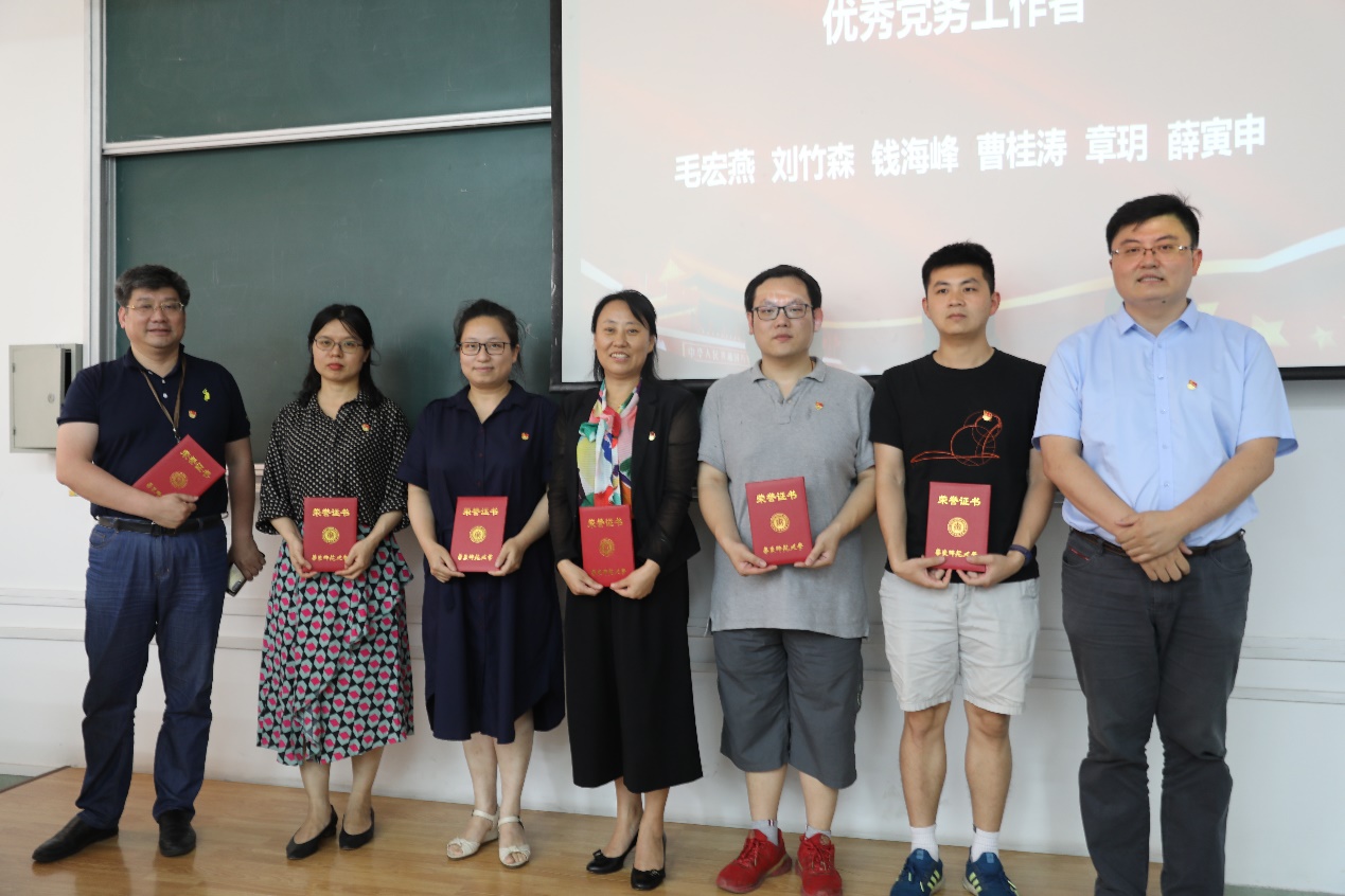 校关工委常务副主任、学院特邀党建组织员杜公卓,学院副院长陈铭松(主持工作)分别为学院“优秀共产党员” 、“优秀党务工作者” 、“先进基层党组织”的获奖者颁奖。
