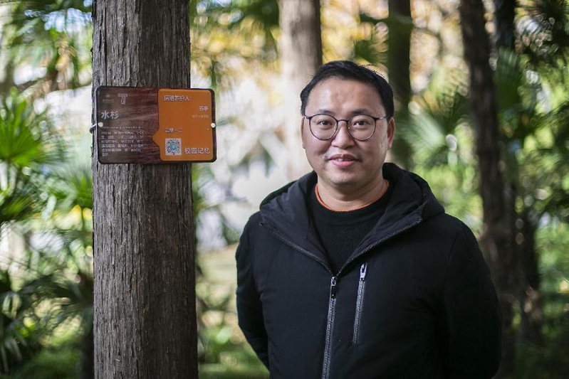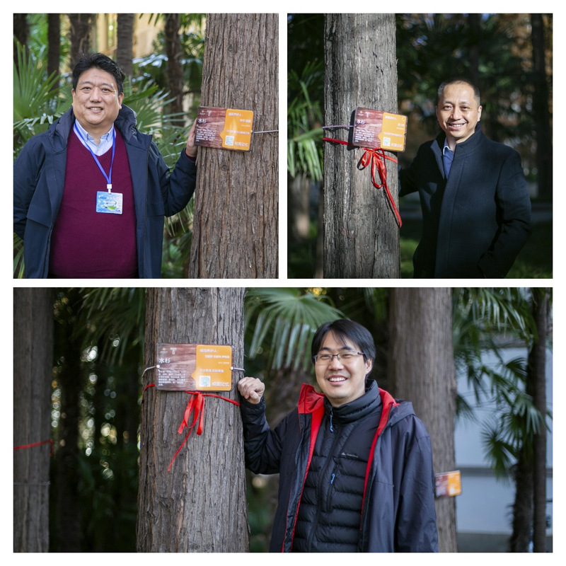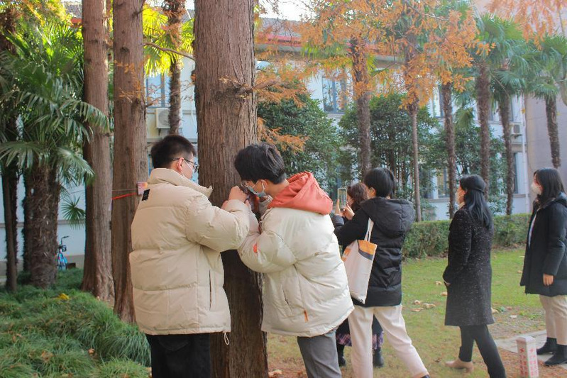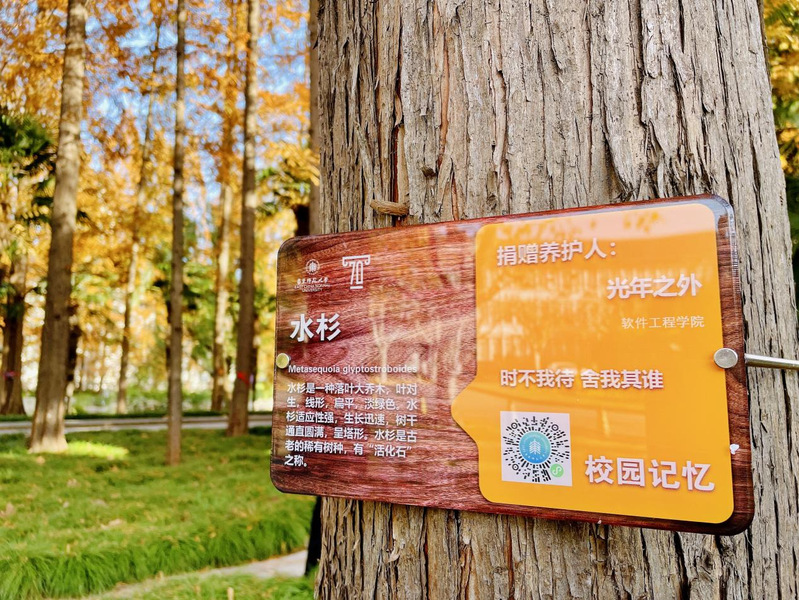 2022级研究生学生志愿者为软件林的水杉挂铭牌