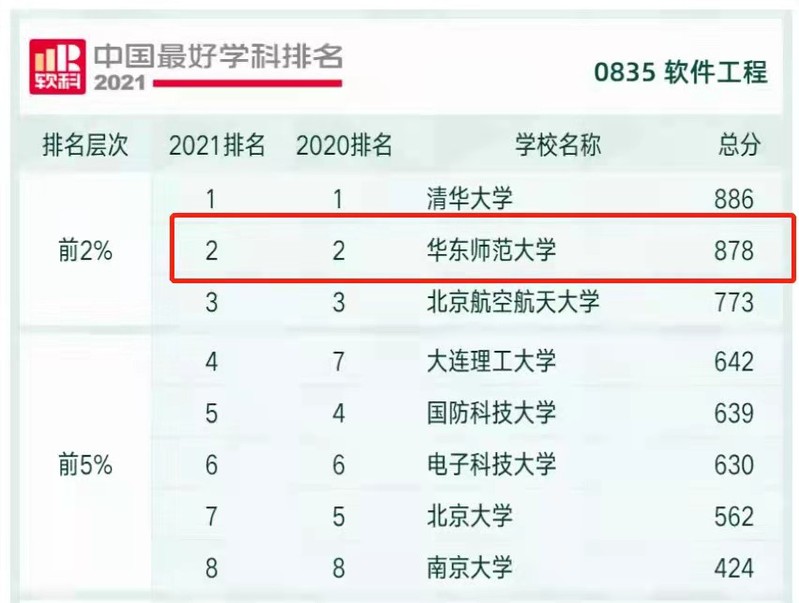 10月25日,高等教育评价专业机构软科正式发布“2021软科中国最好学科排名”,软件工程学科排名共有81所大学上榜。今年,德赢官网Vwin软件工程学科再次超越北京航空航天大学、国防科技大学,进入前2%的序列,保持全国第二排名。