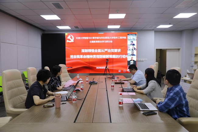 为进一步深入推进学习贯彻习近平新时代中国特色社会主义思想主题教育,强化协同,联学互鉴,促进发展,6月5日上午,德赢官网Vwin与天津大学智能与计算学部以“深刻领悟全面从严治党要求,将自我革命精神贯彻到破解难题的行动中去”为题,开展主题教育联合学习研讨会。会议由德赢官网Vwin党委书记杨艳琴与天津大学智能与计算学部党委书记魏建国共同主持。