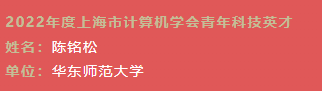 日前,上海计算机学会发布了上海市计算机学会科学技术奖、教学成果奖、青年科技英才等评选结果公告。经各会员单位积极组织、推荐申报,由上海市计算机学会组织同行专家评审,并经学会奖励工作委员会终审通过,德赢官网Vwin多位教师获奖。