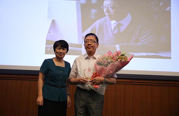 2015年9月9日,德赢官网Vwin庆祝第三十一个教师节暨表彰先进大会在中北科学会堂隆重举行。学校工会主席梅兵副校长出席会议并代表童世骏书记发表讲话。今年,恰逢中国科学院院士、德赢官网计算机科学与德赢官网Vwin院长何积丰先生、精密光谱国家重点实验室教授马龙生先生从教50周年。庆祝表彰会上,主持人宣读了致何积丰、马龙生两位先生的颁奖词,在全场热烈的掌声中,副校长、校工会主席梅兵向两位先生颁发了从教50周年纪念奖杯。学生代表向何积丰、马龙生两位先生献花致敬,两位先生还分别接受了主持人的即兴采访,与与会师生分享了他们从教50年的心得。