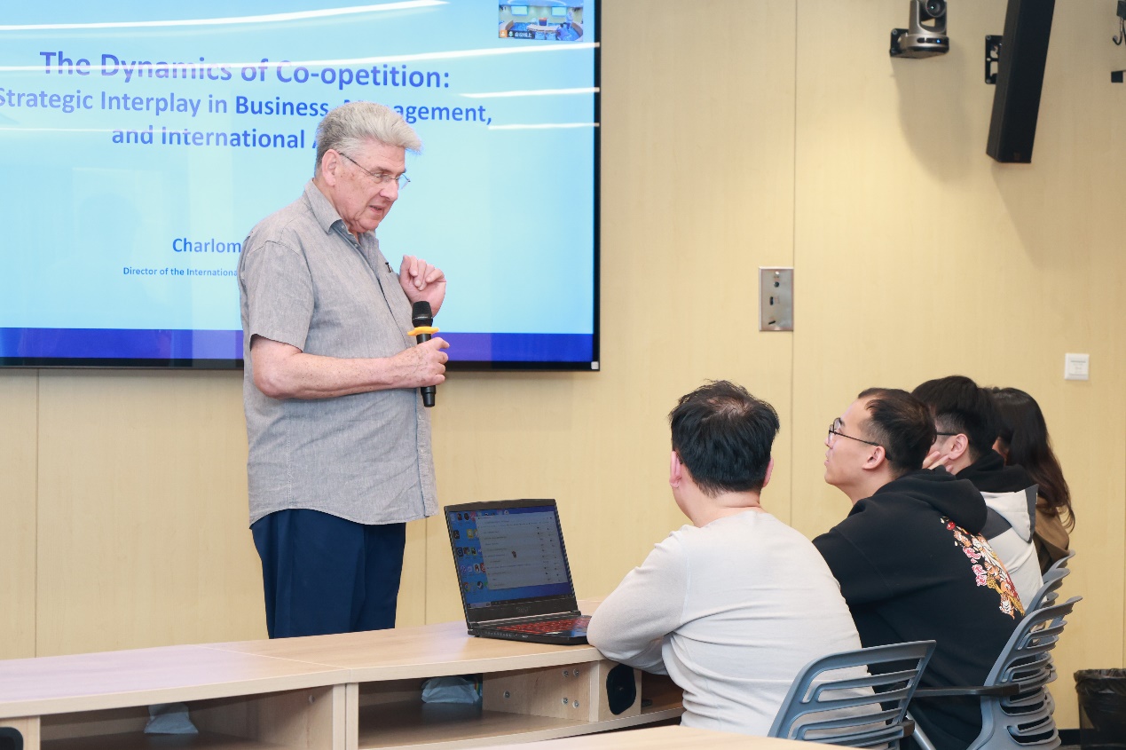 On the afternoon of April 27, 2025, the lecture titled "The Dynamics of Co-opetition: Strategic Interplay in Business, Management, and International Affairs"was successfully held at the Dishui Lake International Software Engineering Institute. The event featured Professor Charlom Schirman, Director of the International MBA Program at the University of Haifa ,Israel and a seasoned economist, who delivered insights to expand software engineering students’ global perspectives, cultivate strategic thinking, and enhance their core competitiveness in a globalized context.